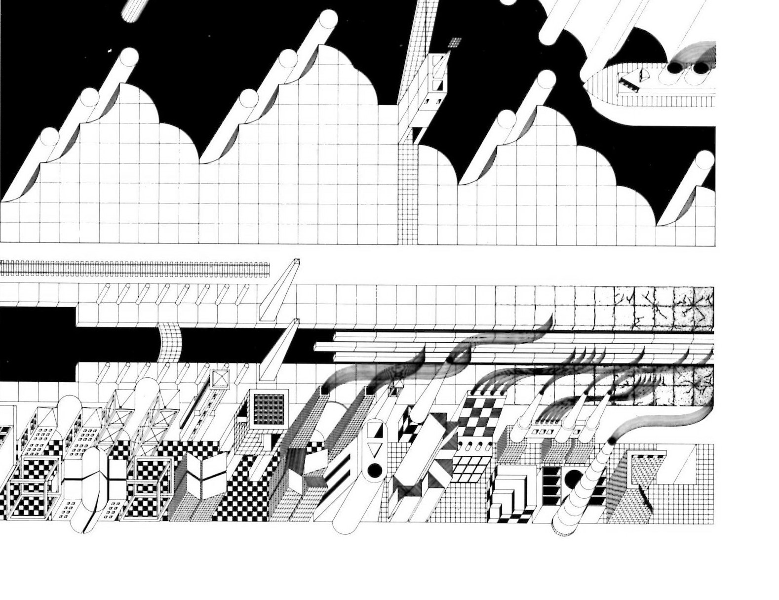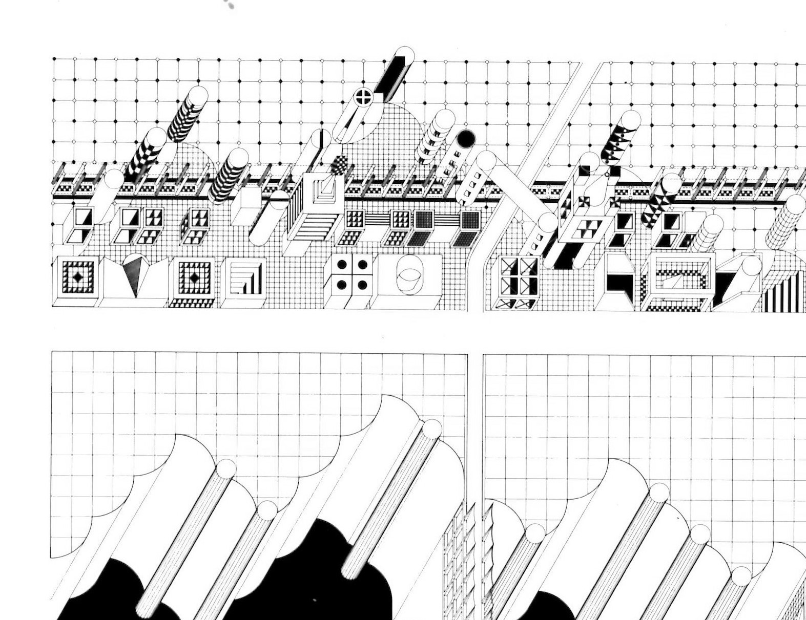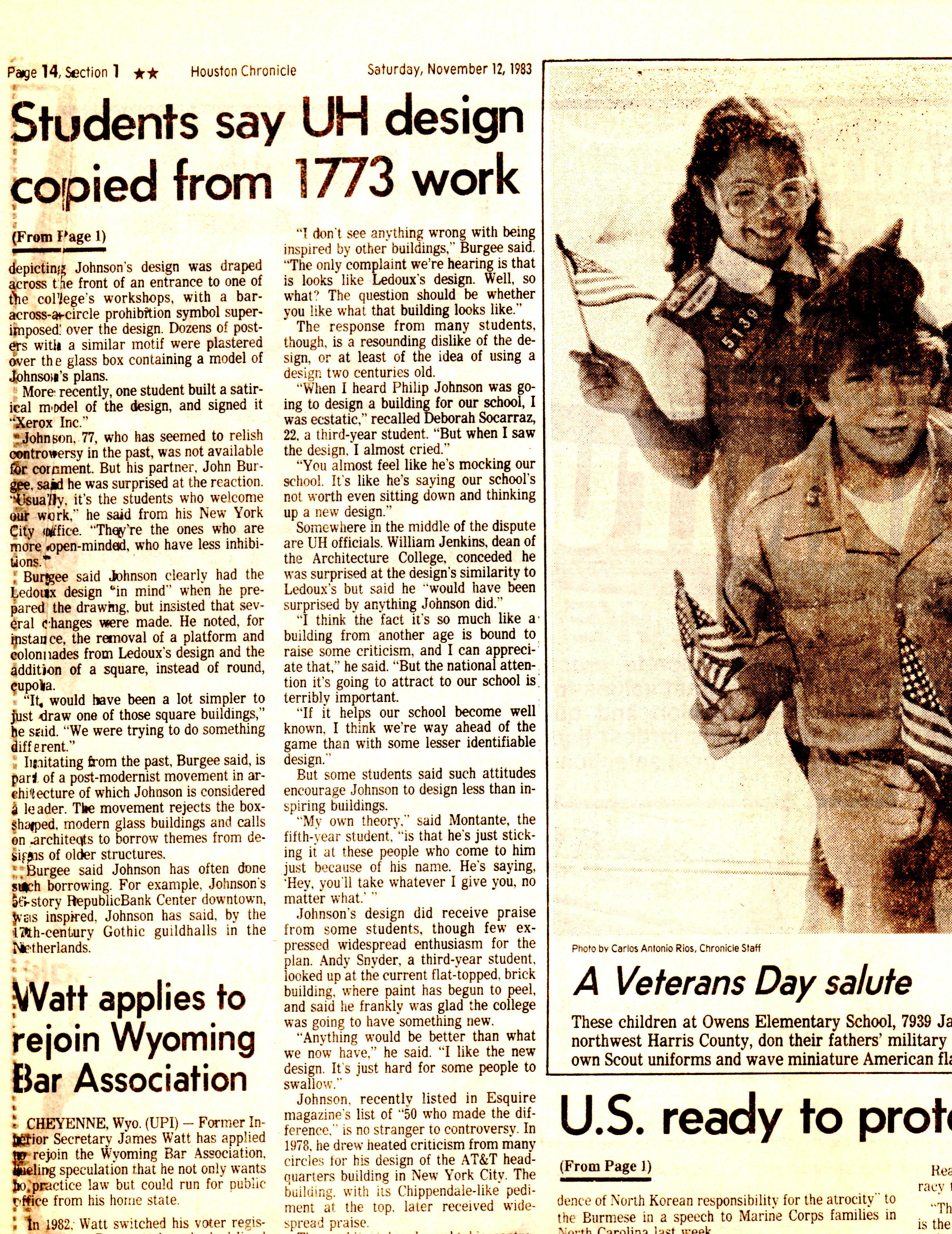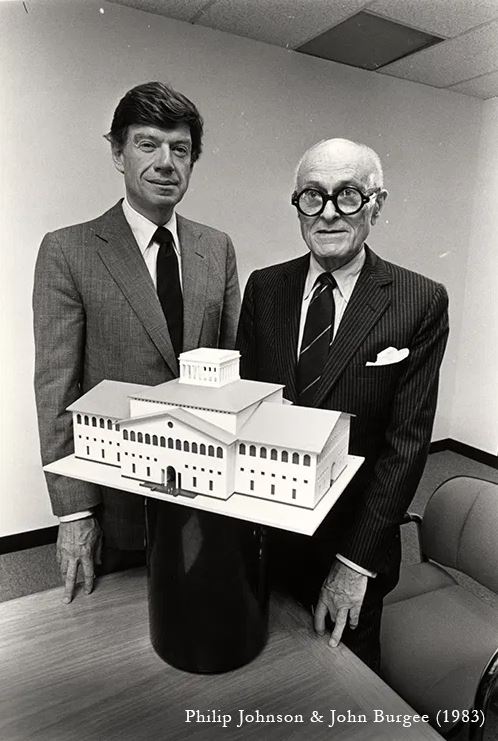 Oh to be young and full of idealistic views again. In 1983, Philip Johnson was the Post Modern Movement’s bad boy and we the Architecture students at the University of Houston fervently protested his plagiarized design for the new School of Architecture. We felt Houston should know Ledoux came first…Below is a mix of items from that time with the drawings and designs being a mix of student work I just happened to have on hand digitally…